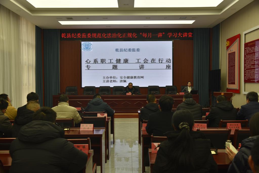 1月30日,乾县纪委监委举办第十一期纪检监察规范化法治化正规化“每月一讲”学习大讲堂,全县纪检监察干部参加培训。