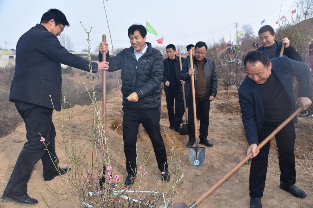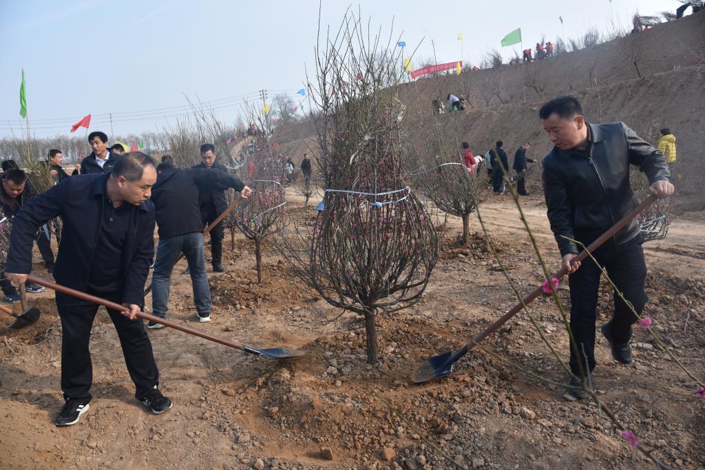 活动现场,大家分工协作、干劲十足,挥锹铲土、扶苗定植、培土围堰。一排排新栽树苗错落而立,为乾县大地增添了勃勃生机。